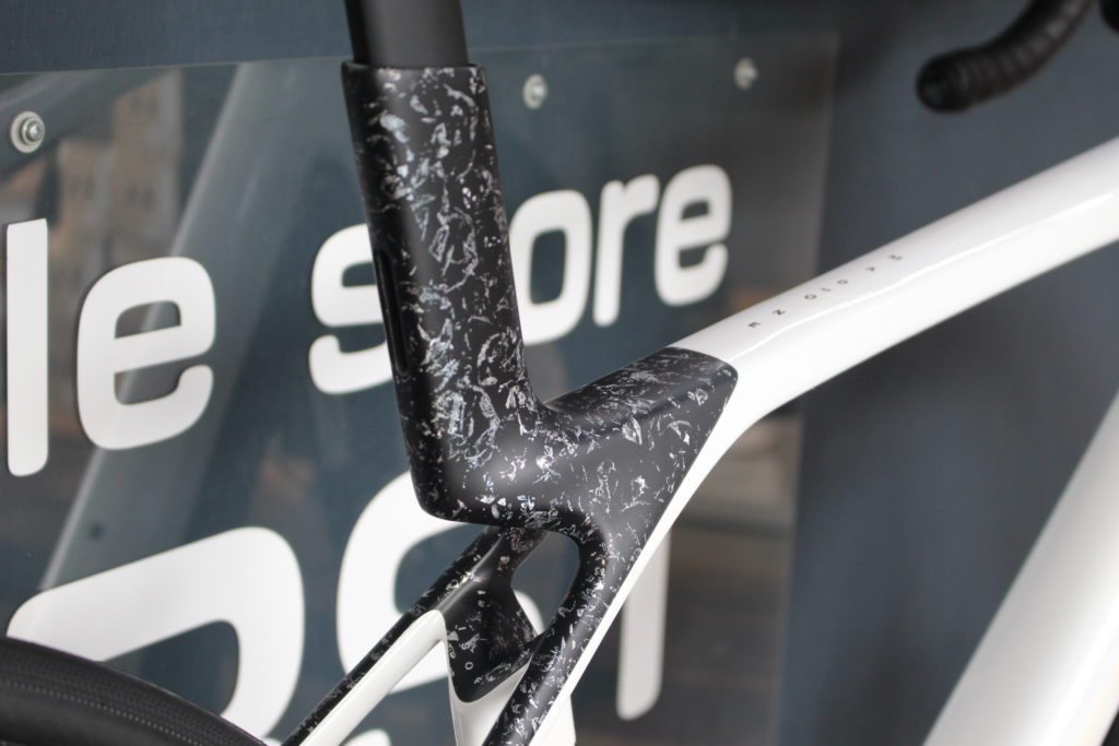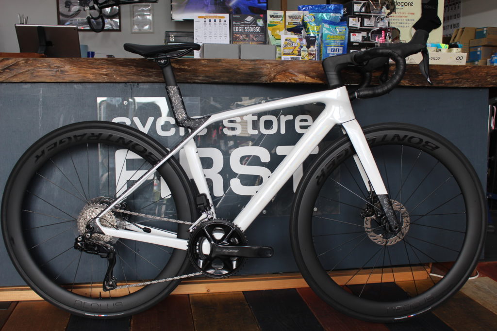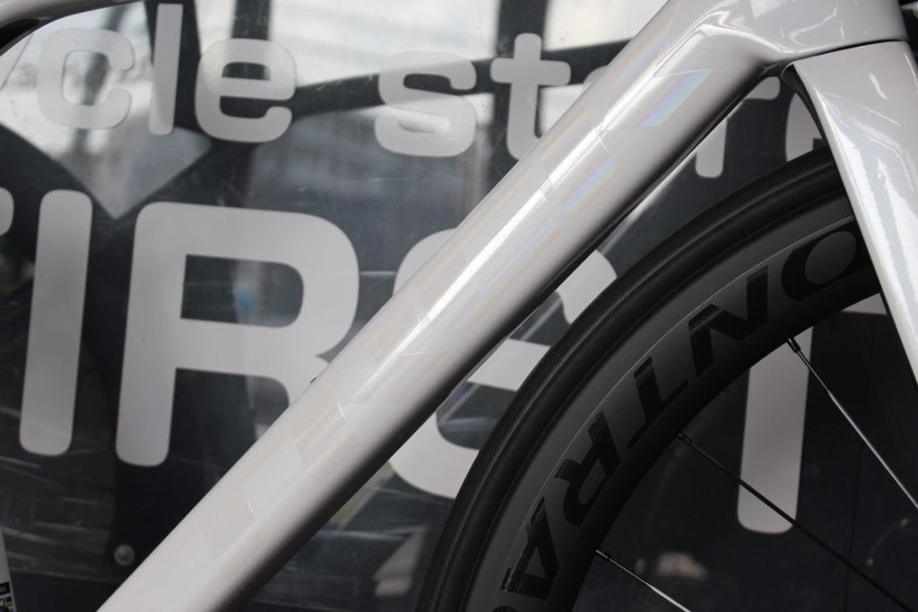 MADONE SL6のニューカラーのホワイトはオシャレです。写真より実車カラーの方が塗装の美しさが分かると思います。