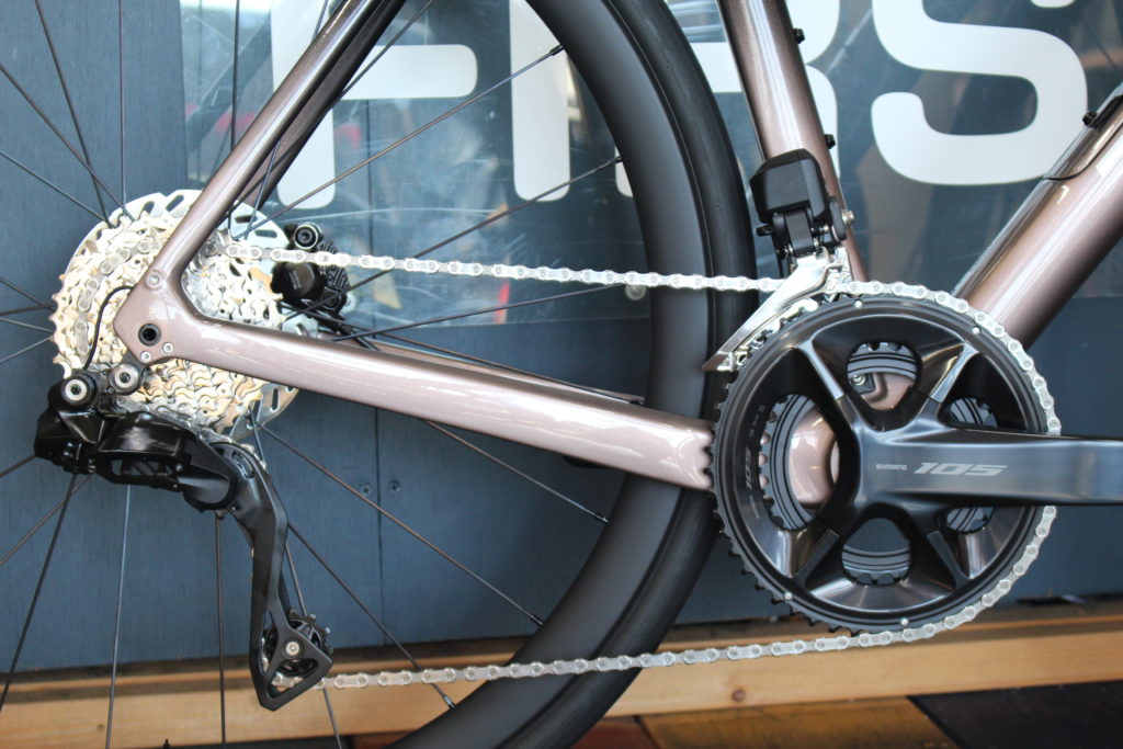 DOMANE SL6は、快適性の高いフレームに105Di2を搭載したエンデュランスロードですが、BB回りの剛性がしっかりしていて、バイクもエンデュランスとしては軽量なので、登りも得意なバイクで、オールラウンドに使用できるロードバイクとなっています。