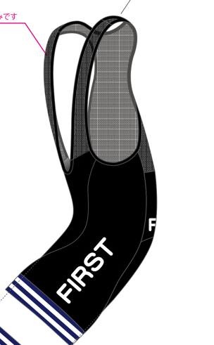 FIRSTのショップジャージを作成します。サイクルジャージ・ビブショーツ・ベスト・グローブの4種類です。
